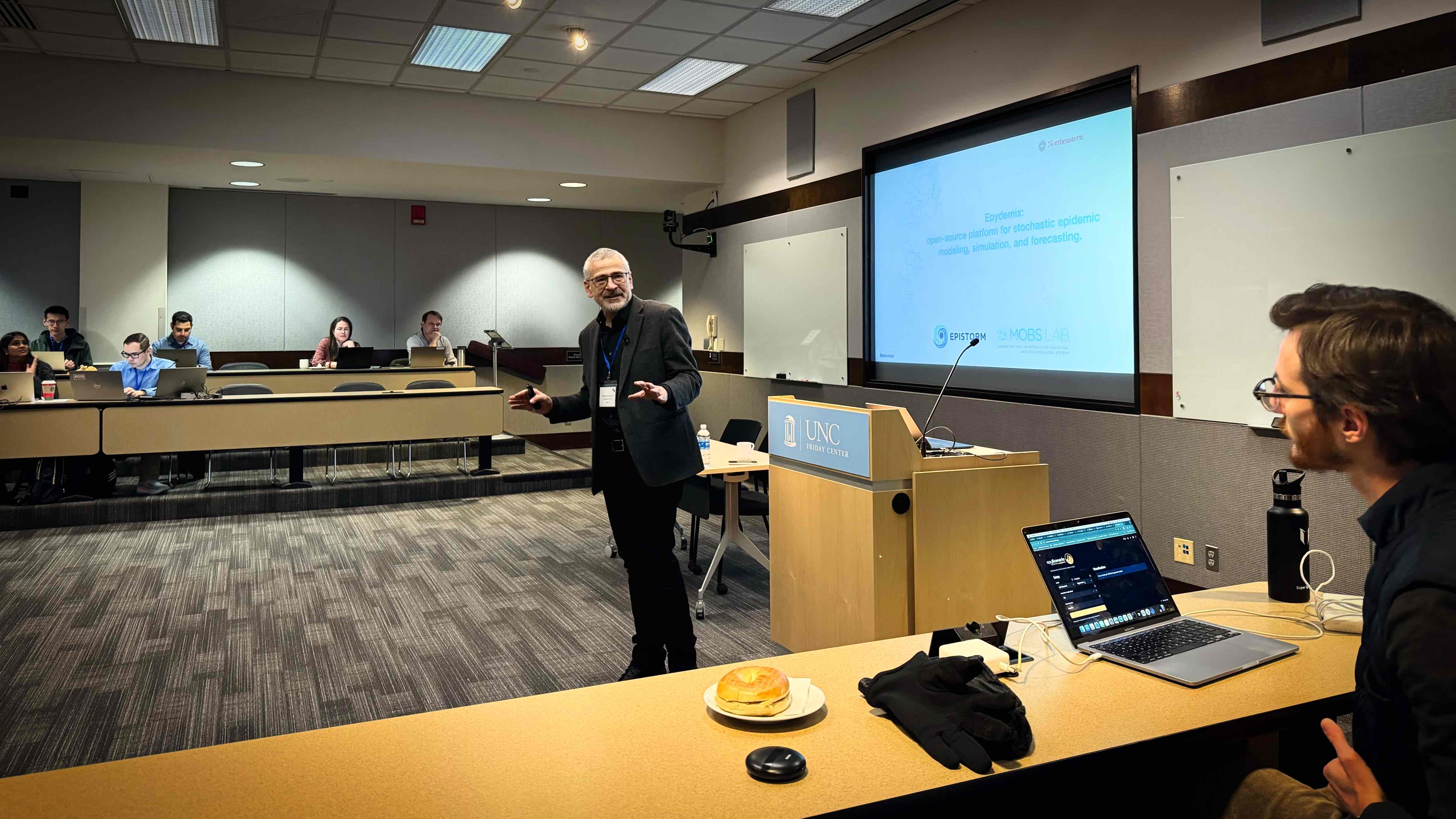 In January 2026, the Epistorm team delivered a successful Technology Transfer Workshop at the University of North Carolina at Chapel Hill, engaging more than 40 participants from the InsightNet network, including over 20 representatives from STLTs. This two-day, hands-on workshop introduced participants to Epydemix, an open-source platform for stochastic epidemic modeling, simulation, and forecasting. Participants gained both theoretical understanding and practical experience using Epydemix across its various interfaces, including simulation dashboards, the Python package, R integration, and forecasting tools.