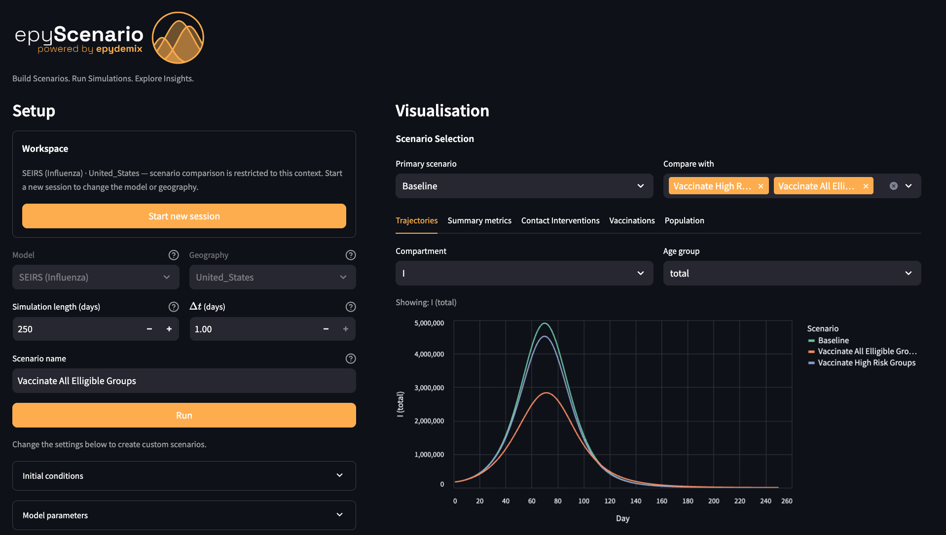 Strengthens epidemic modeling capacity at state, tribal, local, and territorial health departments by providing accessible, production-ready tools for simulation, calibration, and forecasting. Equips public health practitioners with tools to generate actionable insights during outbreaks, evaluate intervention scenarios, and communicate uncertainty to decision-makers.